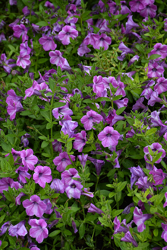 Dekko™ Pinwheel Purple Petunia will grow to be about 12 inches tall at maturity, with a spread of 22 inches. When grown in masses or used as a bedding plant, individual plants should be spaced approximately 18 inches apart. Its foliage tends to remain dense right to the ground, not requiring facer plants in front. This fast-growing annual will normally live for one full growing season, needing replacement the following year.