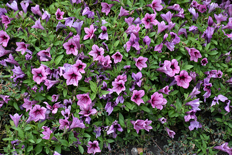Dekko™ Rose Vein Petunia will grow to be about 12 inches tall at maturity, with a spread of 22 inches. When grown in masses or used as a bedding plant, individual plants should be spaced approximately 18 inches apart. Its foliage tends to remain dense right to the ground, not requiring facer plants in front. This fast-growing annual will normally live for one full growing season, needing replacement the following year.