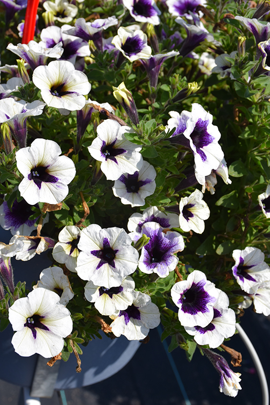 Vigorous rounded habit, ideal for patio containers and hanging baskets; present large, interesting purple and white flowers that are sure to turn heads; heat and drought tolerant once established; deadhead to encourage new blooms throughout the season