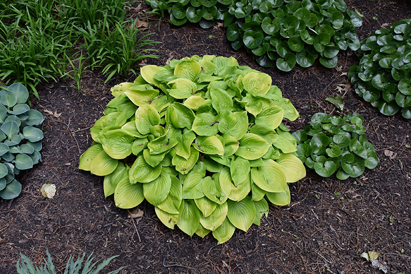 Appletini Hosta will grow to be only 5 inches tall at maturity extending to 10 inches tall with the flowers, with a spread of 16 inches. When grown in masses or used as a bedding plant, individual plants should be spaced approximately 14 inches apart. Its foliage tends to remain low and dense right to the ground. It grows at a slow rate, and under ideal conditions can be expected to live for approximately 10 years. As an herbaceous perennial, this plant will usually die back to the crown each winter, and will regrow from the base each spring. Be careful not to disturb the crown in late winter when it may not be readily seen!