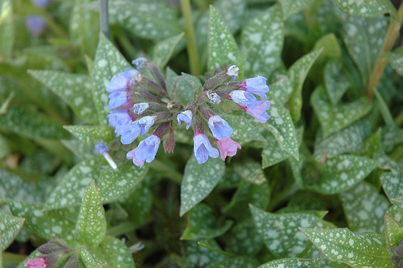 Janet Fisk Lungwort will grow to be about 12 inches tall at maturity, with a spread of 18 inches. When grown in masses or used as a bedding plant, individual plants should be spaced approximately 15 inches apart. Its foliage tends to remain dense right to the ground, not requiring facer plants in front. It grows at a medium rate, and under ideal conditions can be expected to live for approximately 10 years. As an herbaceous perennial, this plant will usually die back to the crown each winter, and will regrow from the base each spring. Be careful not to disturb the crown in late winter when it may not be readily seen!