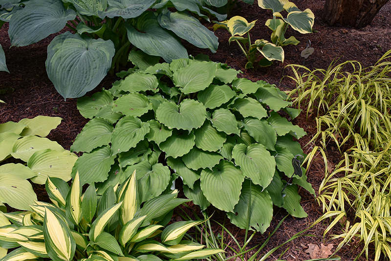 Quick growing and vigorous, this variety produces dense mounds of wavy margined green foliage with silver undersides; pale lavender flowers rise above of arching scapes in midsummer; an exciting addition to garden beds, borders and containers
