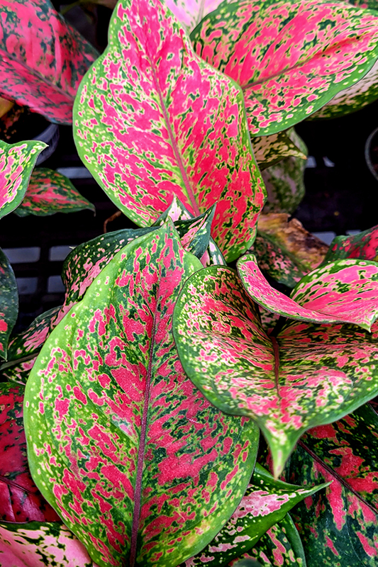 Ruby Ray Chinese Evergreen's attractive pointy leaves remain green in colour with showy ruby-red variegation and tinges of pink throughout the season on a plant with an upright spreading habit of growth.