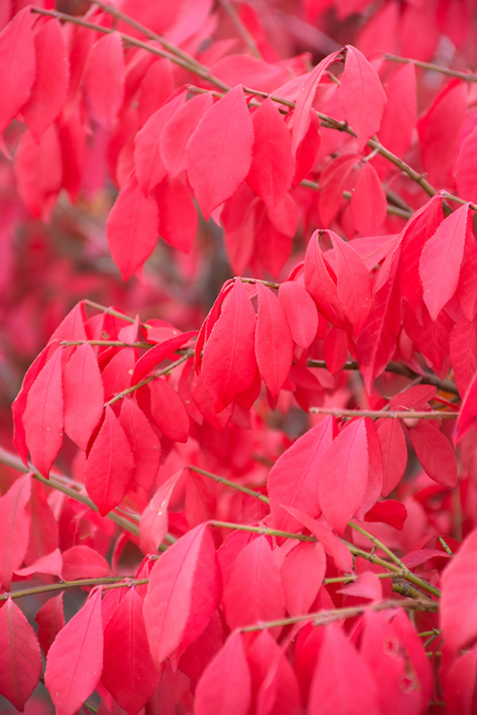 Fire Ball Seedless® Burning Bush has rich green deciduous foliage on a plant with a round habit of growth. The pointy leaves turn an outstanding crimson in the fall. The warty brown bark and harvest gold branches are extremely showy and add significant winter interest.