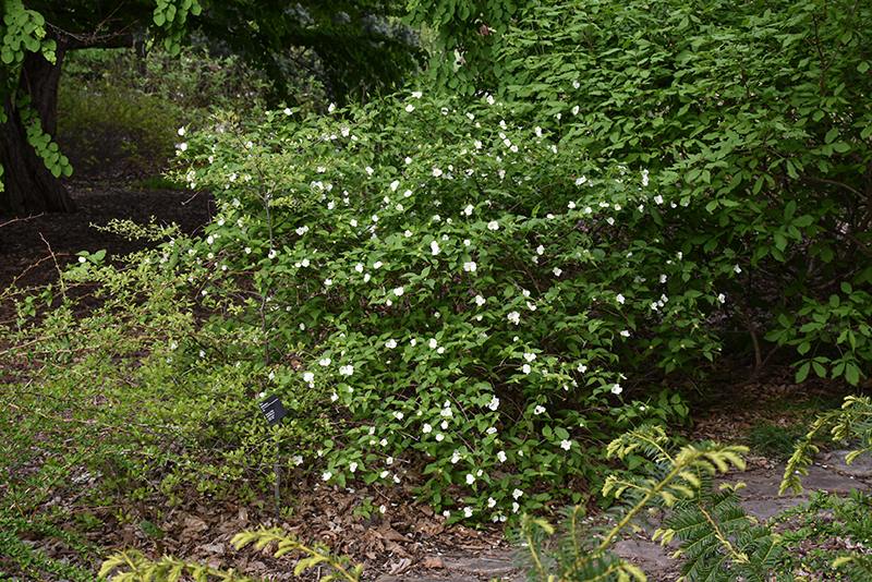 A loose, straggly shrub with pretty white flowers in late spring; tends to spread and form colonies, good for naturalizing areas or used in masses; very adaptable, performs well in shade, keep in check with a regular pruning regimen