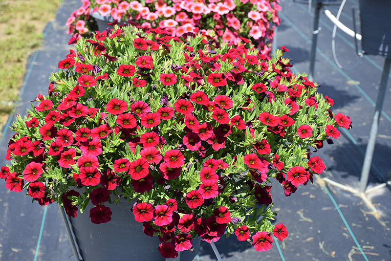Callie® Dark Red Calibrachoa is a fine choice for the garden, but it is also a good selection for planting in outdoor containers and hanging baskets. Because of its trailing habit of growth, it is ideally suited for use as a 'spiller' in the 'spiller-thriller-filler' container combination; plant it near the edges where it can spill gracefully over the pot. Note that when growing plants in outdoor containers and baskets, they may require more frequent waterings than they would in the yard or garden.
