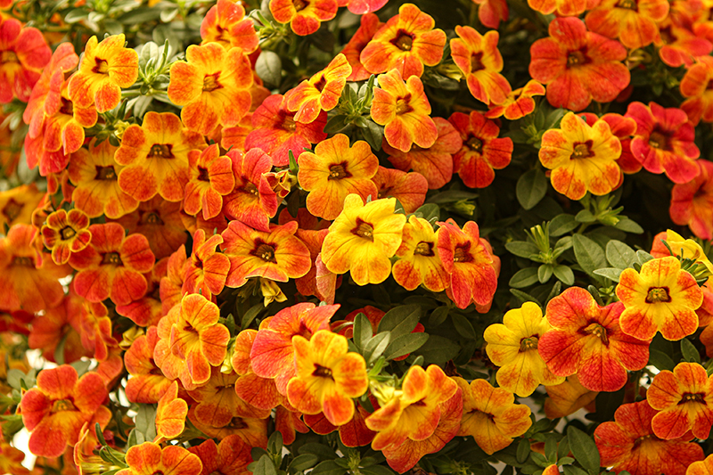 Cha-Cha™ Diva Orange Calibrachoa is blanketed in stunning orange trumpet-shaped flowers with yellow overtones at the ends of the stems from late spring to early fall. Its small pointy leaves remain green in colour throughout the season.