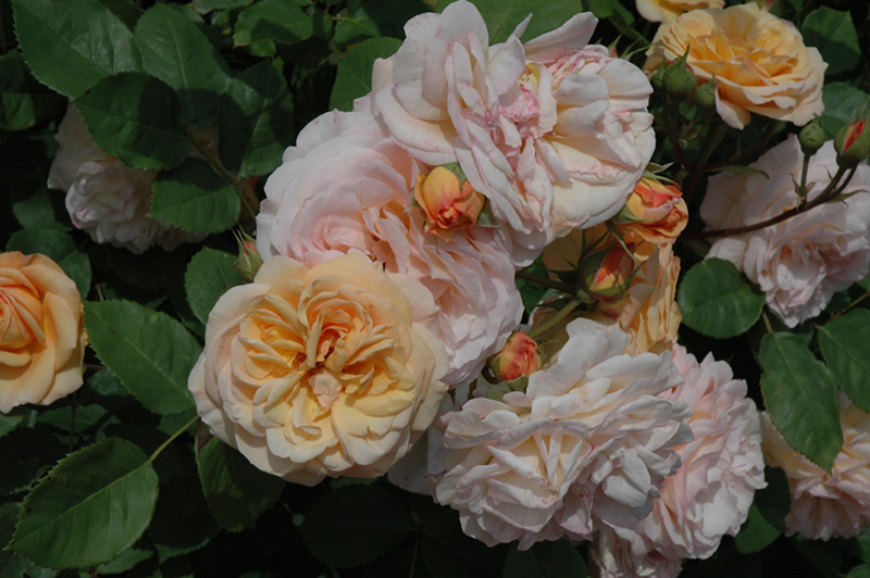 Charles Austin Rose is blanketed in stunning fragrant fully double peach flowers at the ends of the branches from late spring to late summer. The flowers are excellent for cutting. It has dark green deciduous foliage. The oval compound leaves turn yellow in fall.