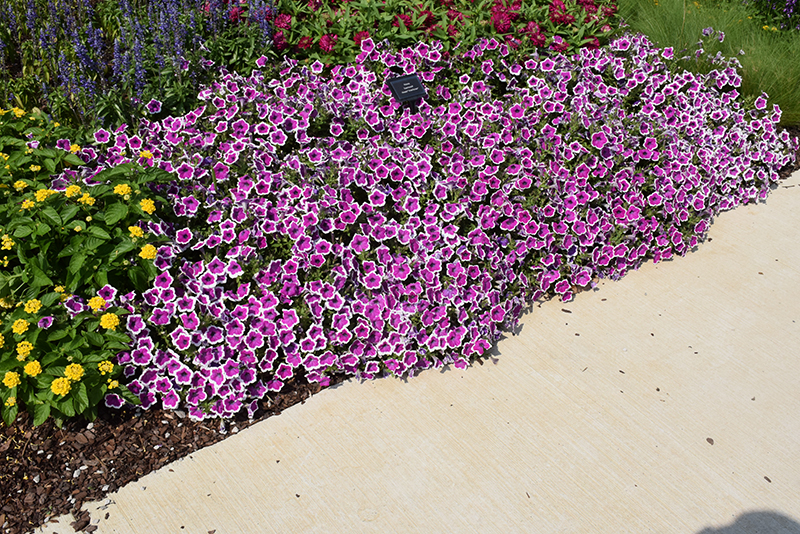 Supertunia® Hoopla® Vivid Orchid™ Petunia will grow to be about 12 inches tall at maturity, with a spread of 24 inches. When grown in masses or used as a bedding plant, individual plants should be spaced approximately 20 inches apart. Its foliage tends to remain dense right to the ground, not requiring facer plants in front. This fast-growing annual will normally live for one full growing season, needing replacement the following year.