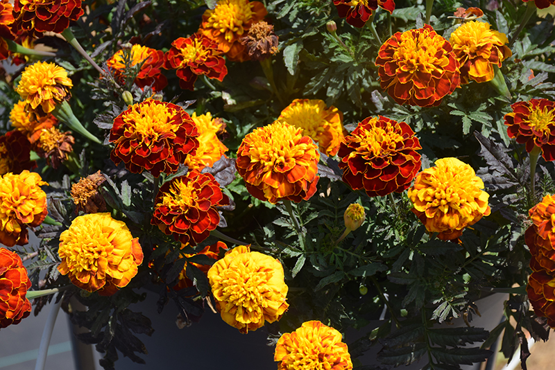 Happy™ Spry Marigold is a fine choice for the garden, but it is also a good selection for planting in outdoor pots and containers. It is often used as a 'filler' in the 'spiller-thriller-filler' container combination, providing a mass of flowers against which the thriller plants stand out. Note that when growing plants in outdoor containers and baskets, they may require more frequent waterings than they would in the yard or garden.