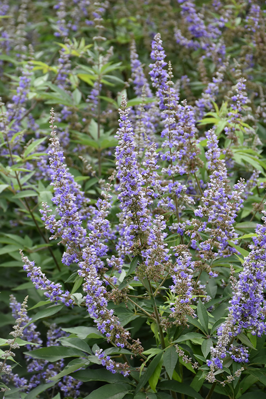 Rock Steady® Chaste Tree will grow to be about 12 feet tall at maturity, with a spread of 5 feet. It tends to be leggy, with a typical clearance of 1 foot from the ground, and should be underplanted with lower-growing perennials. Although it is technically a woody plant, this fast-growing plant can be expected to behave as a perennial in our climate if planted outdoors over the winter, usually regrowing from its base (crown) the following year. As such, gardeners should take into consideration that it will perform differently than it would in its native habitat.
