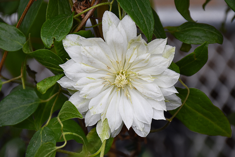 Yukiokoshi Clematis features dainty double white bell-shaped flowers at the ends of the branches from early to late summer. It has green deciduous foliage. The compound leaves do not develop any appreciable fall colour.