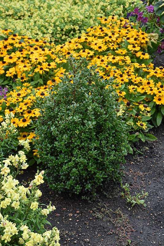 An exceptional evergreen shrub with a very compact, naturally dense, rounded shape; ideal for massing and garden detail use, tiny leaves add aesthetic value, takes pruning very well; does best in evenly moist, acidic soils; disease tolerant