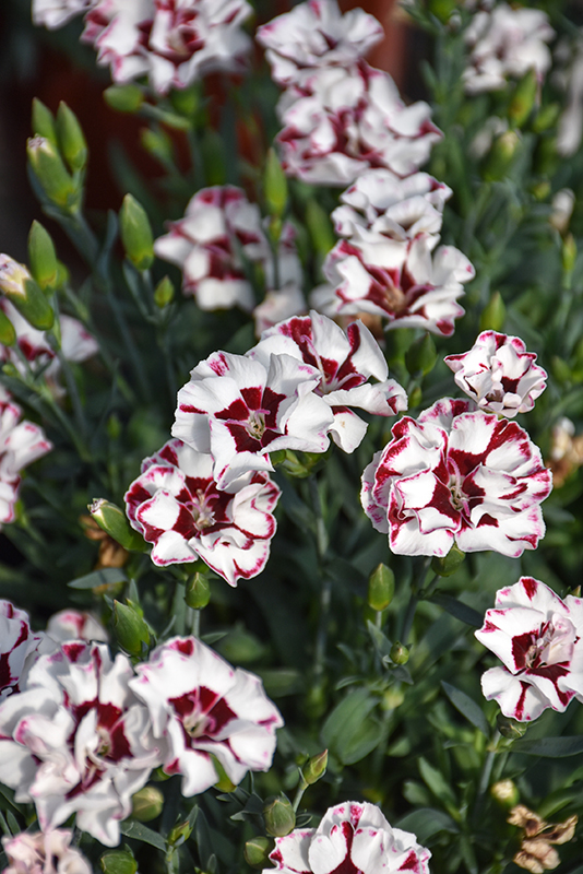 EverLast™ Cherry Swirl Pinks is smothered in stunning fragrant double white frilly flowers with cherry red centers at the ends of the stems from late spring to early fall. The flowers are excellent for cutting. Its attractive narrow leaves remain grayish green in colour throughout the year.