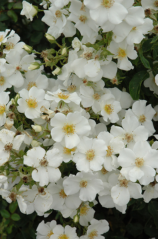 When it comes to easy roses to grow, this is among the lowest maintenance of all, with extremely disease resistant foliage; single flowers are the purest white, borne in tremendous quantities; all roses need full sun and well-drained soil