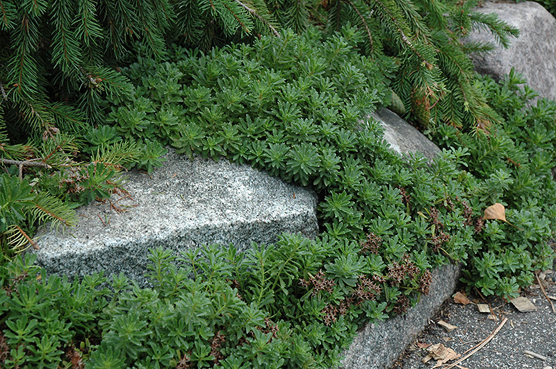 Middendorf Stonecrop will grow to be only 6 inches tall at maturity, with a spread of 18 inches. When grown in masses or used as a bedding plant, individual plants should be spaced approximately 15 inches apart. Its foliage tends to remain low and dense right to the ground. It grows at a fast rate, and under ideal conditions can be expected to live for approximately 10 years. As an herbaceous perennial, this plant will usually die back to the crown each winter, and will regrow from the base each spring. Be careful not to disturb the crown in late winter when it may not be readily seen!