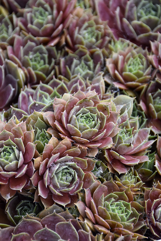 Purple Beauty Hens And Chicks will grow to be only 4 inches tall at maturity extending to 12 inches tall with the flowers, with a spread of 12 inches. When grown in masses or used as a bedding plant, individual plants should be spaced approximately 10 inches apart. Its foliage tends to remain low and dense right to the ground. It grows at a medium rate, and under ideal conditions can be expected to live for approximately 20 years. As an herbaceous perennial, this plant will usually die back to the crown each winter, and will regrow from the base each spring. Be careful not to disturb the crown in late winter when it may not be readily seen!