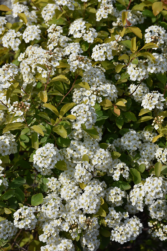 Here's something different - a bridalwreath spirea with colorful foliage, starting out soft yellow and changing to a bright lime green, with masses of creamy white flowers cloaking the arching branches in spring; a real showstopper in the garden
