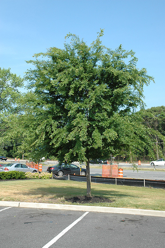 An exceptional shade tree with an arching vase-shaped form, excellent branching structure that resists breakage in storms, and a smaller habit than the species, also hardier; glossy rich green leaves turn bright yellow in fall, flaking bark is interesting