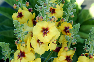 Gold Nugget Mullein has masses of beautiful spikes of gold flowers with dark red eyes rising above the foliage from mid spring to mid summer, which are most effective when planted in groupings. The flowers are excellent for cutting. Its oval leaves remain dark green in colour throughout the season.