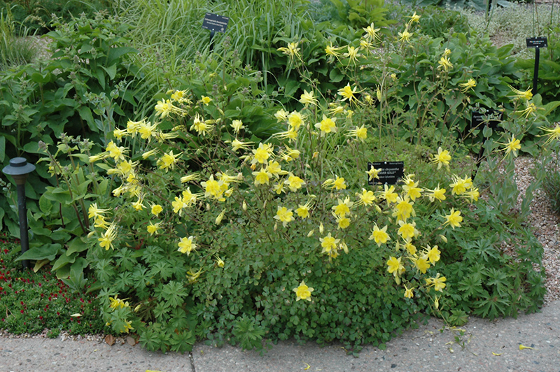Denver Gold Columbine will grow to be about 24 inches tall at maturity, with a spread of 18 inches. Its foliage tends to remain dense right to the ground, not requiring facer plants in front. It grows at a medium rate, and under ideal conditions can be expected to live for approximately 6 years. As an herbaceous perennial, this plant will usually die back to the crown each winter, and will regrow from the base each spring. Be careful not to disturb the crown in late winter when it may not be readily seen!