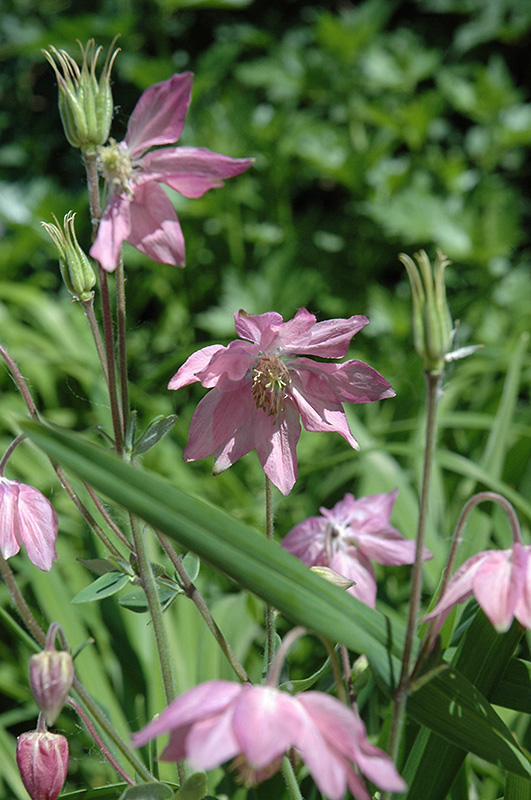 Clematis-Flowered Columbine features dainty nodding double pink ball-shaped flowers at the ends of the stems from late spring to early summer. The flowers are excellent for cutting. Its ferny compound leaves remain bluish-green in colour throughout the season.