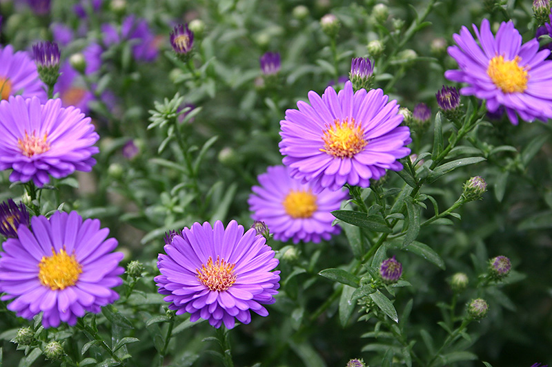 Days Aster has masses of beautiful lavender daisy flowers with yellow eyes at the ends of the stems from late summer to late fall, which are most effective when planted in groupings. The flowers are excellent for cutting. Its narrow leaves remain forest green in colour throughout the season.