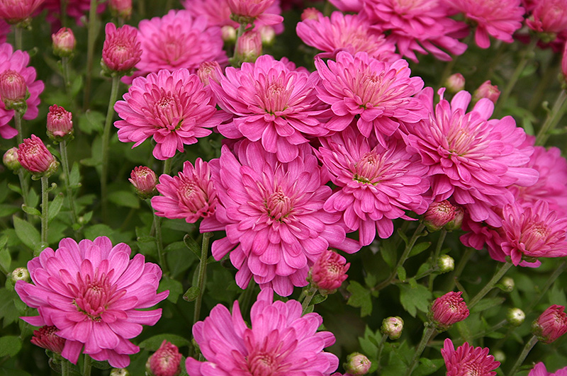 Showy, double, lavender-pink flowers won't fade with age; the flowers cover a mound of strong, flexible stems; blooms late in the season; adaptable to various conditions; best in full sun; a decorative mum