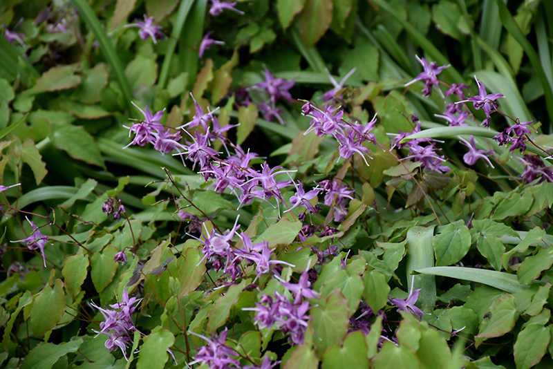 Lilafee Bishop's Hat will grow to be about 18 inches tall at maturity, with a spread of 18 inches. When grown in masses or used as a bedding plant, individual plants should be spaced approximately 15 inches apart. Its foliage tends to remain dense right to the ground, not requiring facer plants in front. It grows at a medium rate, and under ideal conditions can be expected to live for approximately 10 years. As an evegreen perennial, this plant will typically keep its form and foliage year-round.