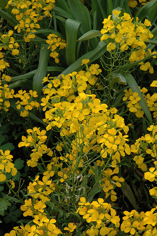 Citrona Yellow Wallflower features showy clusters of fragrant yellow flowers rising above the foliage from early spring to early fall. Its sword-like leaves remain grayish green in colour throughout the season.
