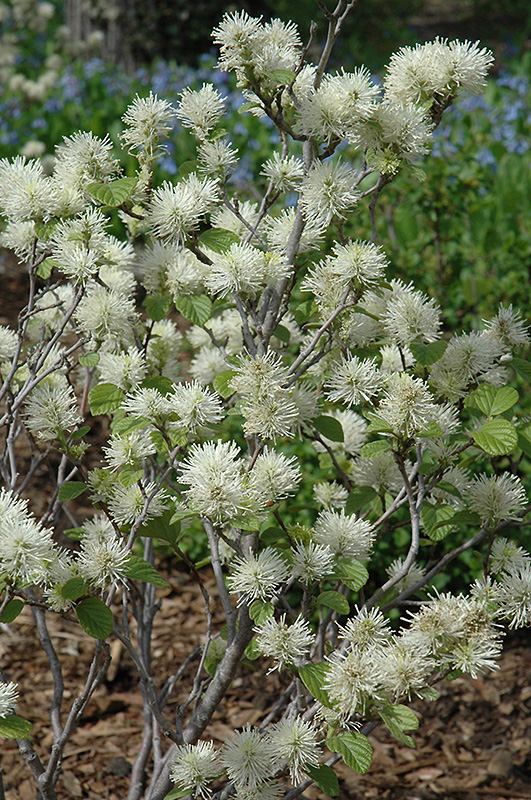 May Bouquet Fothergilla is a dense multi-stemmed deciduous shrub with an upright spreading habit of growth. Its average texture blends into the landscape, but can be balanced by one or two finer or coarser trees or shrubs for an effective composition.