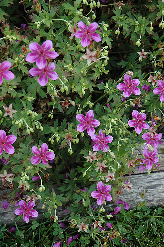Starman Cranesbill will grow to be about 12 inches tall at maturity, with a spread of 12 inches. When grown in masses or used as a bedding plant, individual plants should be spaced approximately 10 inches apart. Its foliage tends to remain dense right to the ground, not requiring facer plants in front. It grows at a medium rate, and under ideal conditions can be expected to live for approximately 10 years. As an herbaceous perennial, this plant will usually die back to the crown each winter, and will regrow from the base each spring. Be careful not to disturb the crown in late winter when it may not be readily seen!