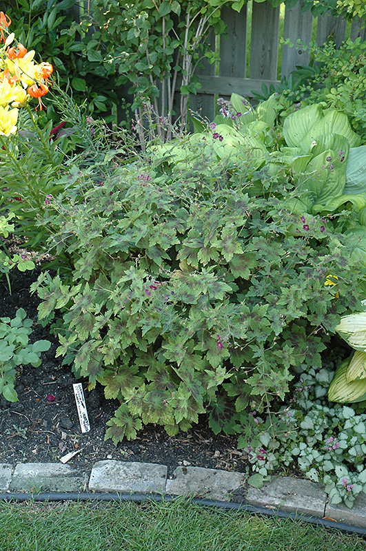 Mourning Widow Cranesbill will grow to be about 24 inches tall at maturity, with a spread of 18 inches. When grown in masses or used as a bedding plant, individual plants should be spaced approximately 15 inches apart. Its foliage tends to remain dense right to the ground, not requiring facer plants in front. It grows at a medium rate, and under ideal conditions can be expected to live for approximately 10 years. As an herbaceous perennial, this plant will usually die back to the crown each winter, and will regrow from the base each spring. Be careful not to disturb the crown in late winter when it may not be readily seen!