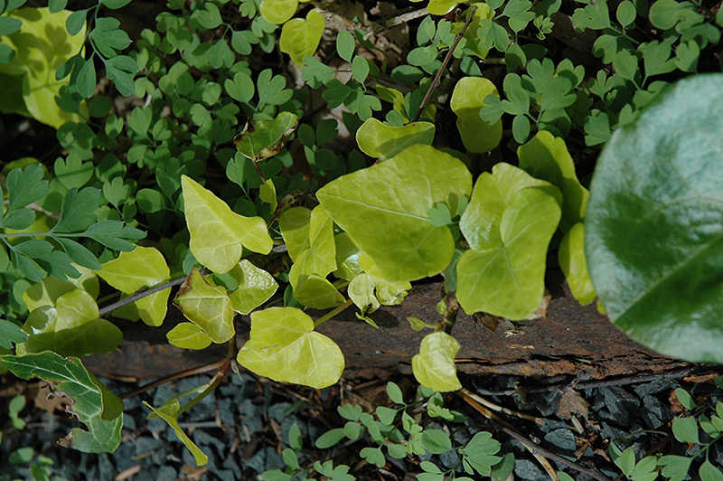 Rich green leaves with lighter green veining emerges from a warm gold color in spring; many uses for this plant from hanging baskets, walls, groundcover, to indoor gardening; a little less vigorous than the species but still spreads