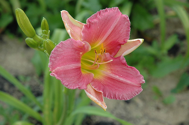 Carey Quinn Daylily will grow to be about 30 inches tall at maturity, with a spread of 3 feet. When grown in masses or used as a bedding plant, individual plants should be spaced approximately 30 inches apart. It grows at a medium rate, and under ideal conditions can be expected to live for approximately 10 years. As an herbaceous perennial, this plant will usually die back to the crown each winter, and will regrow from the base each spring. Be careful not to disturb the crown in late winter when it may not be readily seen!