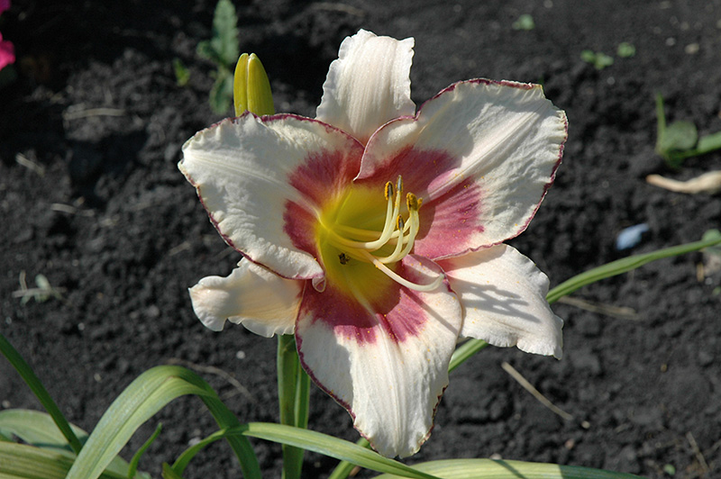 Chicago Picotee Memories Daylily will grow to be about 30 inches tall at maturity, with a spread of 3 feet. When grown in masses or used as a bedding plant, individual plants should be spaced approximately 30 inches apart. It grows at a medium rate, and under ideal conditions can be expected to live for approximately 10 years. As an herbaceous perennial, this plant will usually die back to the crown each winter, and will regrow from the base each spring. Be careful not to disturb the crown in late winter when it may not be readily seen!