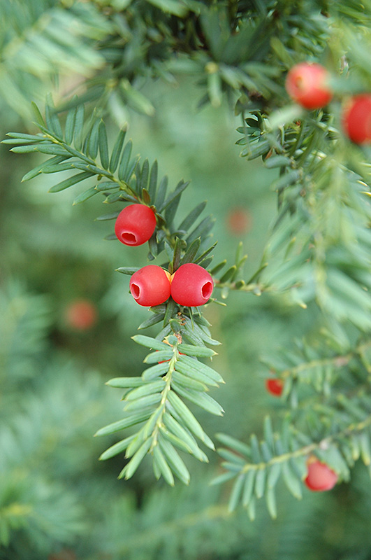 An extremely versatile small evergreen tree; the species itself is a dense pyramidal tree with deep green needles and characteristic red berries on female plants, takes pruning well, loves shade; numerous cultivars are available for specific applications
