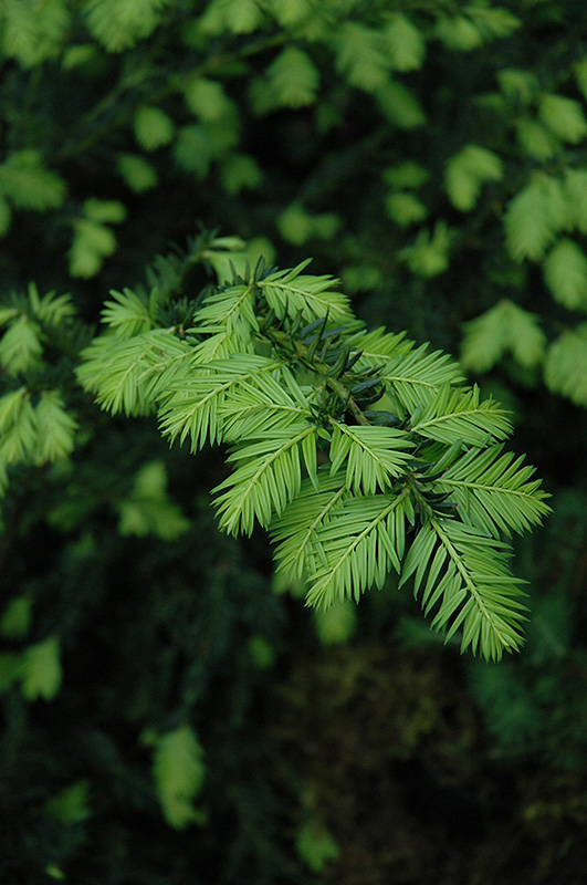Japanese Yew is primarily valued in the landscape for its distinctively pyramidal habit of growth. It has dark green evergreen foliage which emerges light green in spring. The ferny sprays of foliage remain dark green throughout the winter. The fruits are showy red drupes displayed from early to late fall. The peeling brown bark adds an interesting dimension to the landscape.