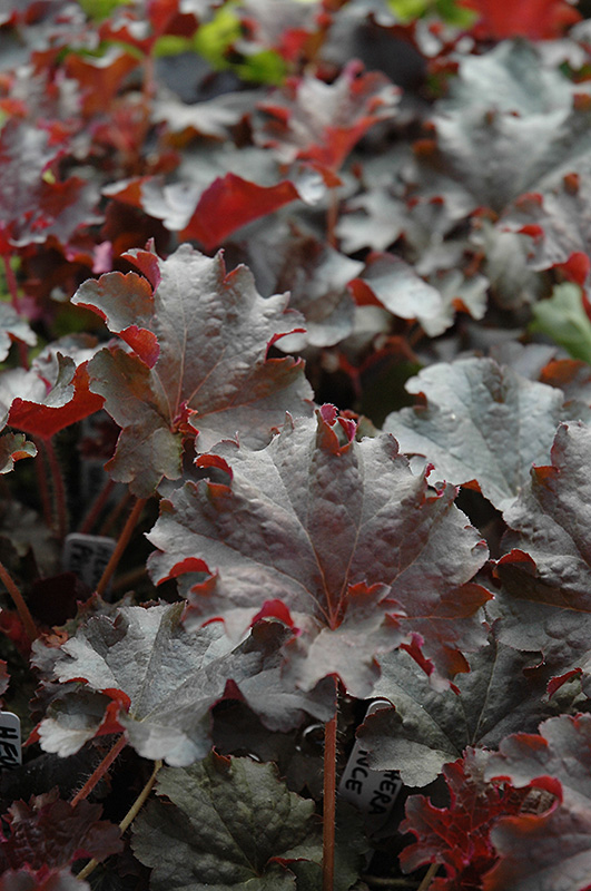 Prince Of Orange Coral Bells will grow to be about 10 inches tall at maturity extending to 15 inches tall with the flowers, with a spread of 15 inches. When grown in masses or used as a bedding plant, individual plants should be spaced approximately 12 inches apart. Its foliage tends to remain low and dense right to the ground. It grows at a medium rate, and under ideal conditions can be expected to live for approximately 10 years. As an evegreen perennial, this plant will typically keep its form and foliage year-round.