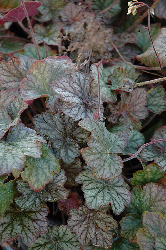 Pinot Noir Hairy Alumroot will grow to be about 12 inches tall at maturity extending to 24 inches tall with the flowers, with a spread of 18 inches. When grown in masses or used as a bedding plant, individual plants should be spaced approximately 15 inches apart. Its foliage tends to remain dense right to the ground, not requiring facer plants in front. It grows at a medium rate, and under ideal conditions can be expected to live for approximately 10 years. As an evegreen perennial, this plant will typically keep its form and foliage year-round.