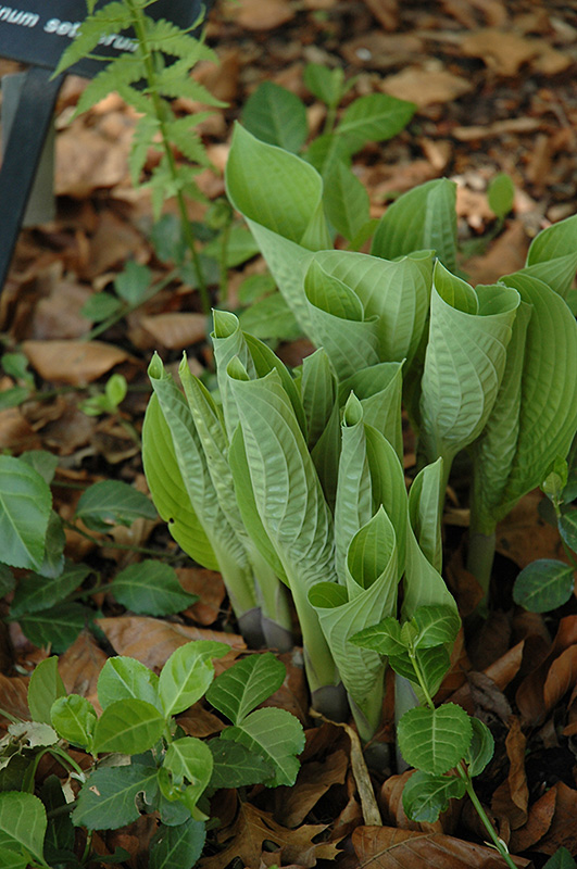Amazing gold-green foliage is cupped and very crinkled, undulations create interesting effect; provides beautiful texture and contrast to other plants; white spikes of flowers in mid-summer