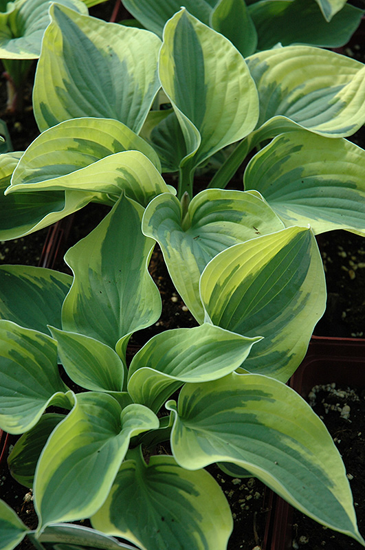 Mama Mia Hosta will grow to be about 12 inches tall at maturity extending to 24 inches tall with the flowers, with a spread of 3 feet. When grown in masses or used as a bedding plant, individual plants should be spaced approximately 30 inches apart. Its foliage tends to remain dense right to the ground, not requiring facer plants in front. It grows at a medium rate, and under ideal conditions can be expected to live for approximately 10 years. As an herbaceous perennial, this plant will usually die back to the crown each winter, and will regrow from the base each spring. Be careful not to disturb the crown in late winter when it may not be readily seen!