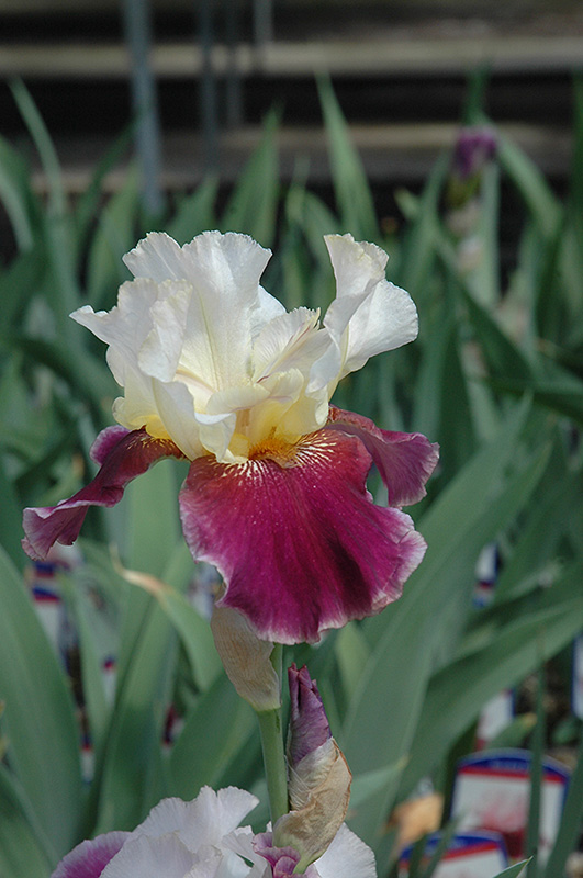 Crimson Snow features showy white flag-like flowers with yellow throats and purple falls at the ends of the stems in mid spring. The flowers are excellent for cutting. Its sword-like leaves remain green in colour throughout the season.