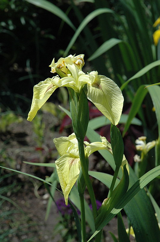 Bright sulphur-yellow flowers emerge from lush, sword-like foliage; perfect for water gardens as they require consistent moisture; hardy and easy to grow; cut back in the fall to reduce pests