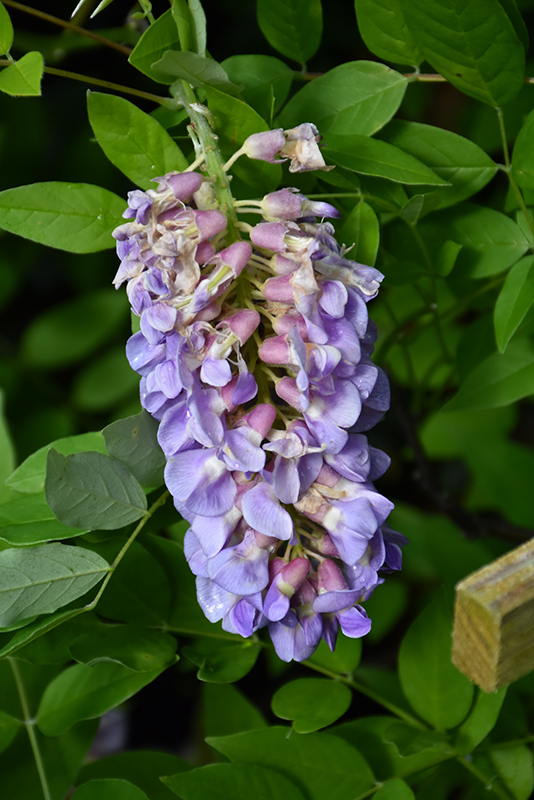 Most likely the best known cultivar of American wisteria; the deliciously fragrant pale lilac-purple flowers have a yellow spot, and look like grape clusters; vines can grow quite woody and provide gorgeous dense coverage for an arbor or trellis