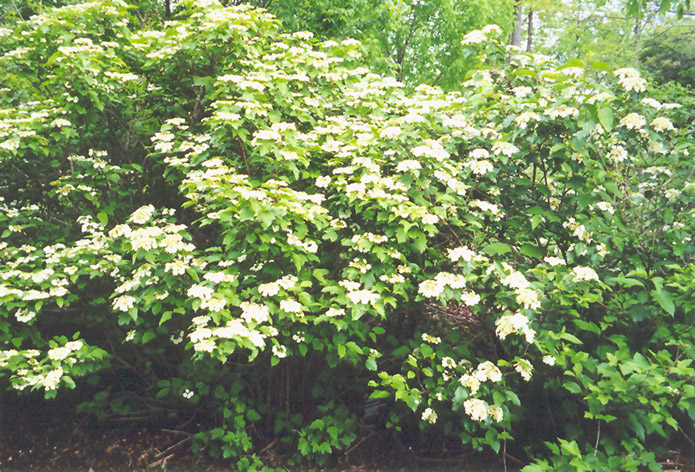 A wonderful tall and spreading shrub, with showy clusters of snowy white pinwheel-like flowers in spring followed by brilliant red fruit in fall and good fall color; hardy and adaptable, makes a great specimen or tall natural screen, will grow quite large