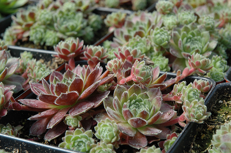 Sunkist Hens And Chicks will grow to be only 3 inches tall at maturity extending to 12 inches tall with the flowers, with a spread of 12 inches. When grown in masses or used as a bedding plant, individual plants should be spaced approximately 10 inches apart. Its foliage tends to remain low and dense right to the ground. It grows at a medium rate, and under ideal conditions can be expected to live for approximately 20 years. As an herbaceous perennial, this plant will usually die back to the crown each winter, and will regrow from the base each spring. Be careful not to disturb the crown in late winter when it may not be readily seen!