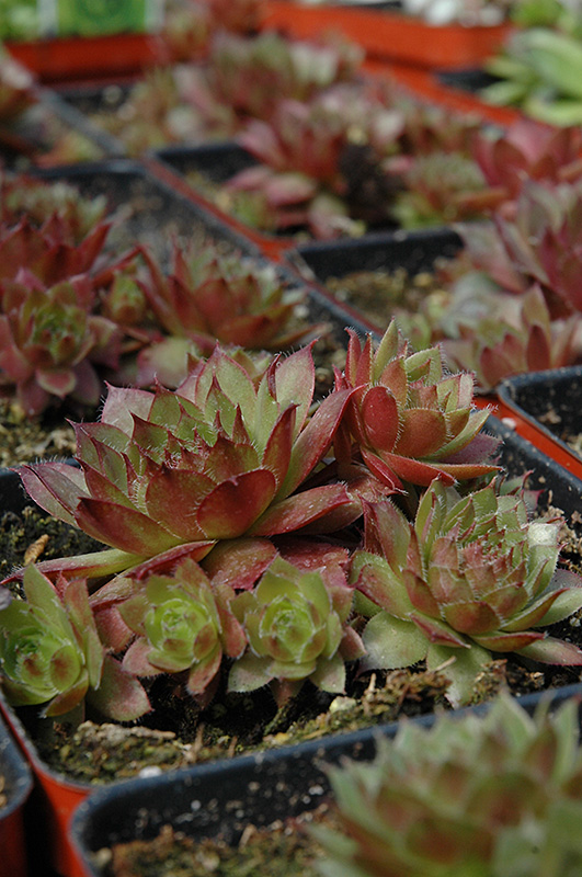 Pink Dawn Hens And Chicks will grow to be only 3 inches tall at maturity extending to 12 inches tall with the flowers, with a spread of 12 inches. When grown in masses or used as a bedding plant, individual plants should be spaced approximately 10 inches apart. Its foliage tends to remain low and dense right to the ground. It grows at a medium rate, and under ideal conditions can be expected to live for approximately 20 years. As an herbaceous perennial, this plant will usually die back to the crown each winter, and will regrow from the base each spring. Be careful not to disturb the crown in late winter when it may not be readily seen!