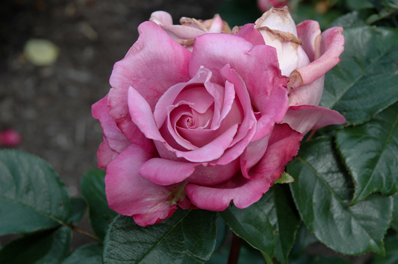 Highly fragrant and velvety plum-purple blooms crown this lovely hybrid tea rose shrub; it is very vigorous and cooler temperatures brings out even larger flowers; a rare color in roses indeed