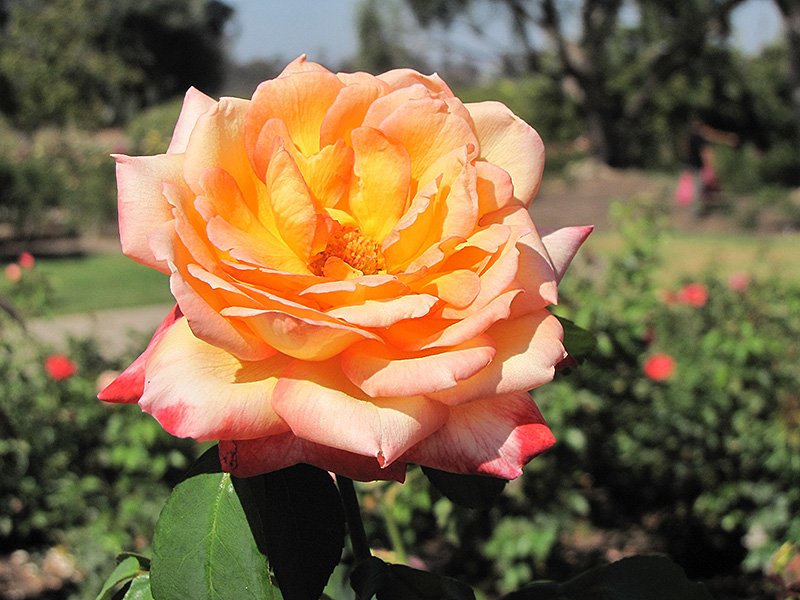 Glowing Peace Rose is a multi-stemmed deciduous shrub with an upright spreading habit of growth. Its average texture blends into the landscape, but can be balanced by one or two finer or coarser trees or shrubs for an effective composition.